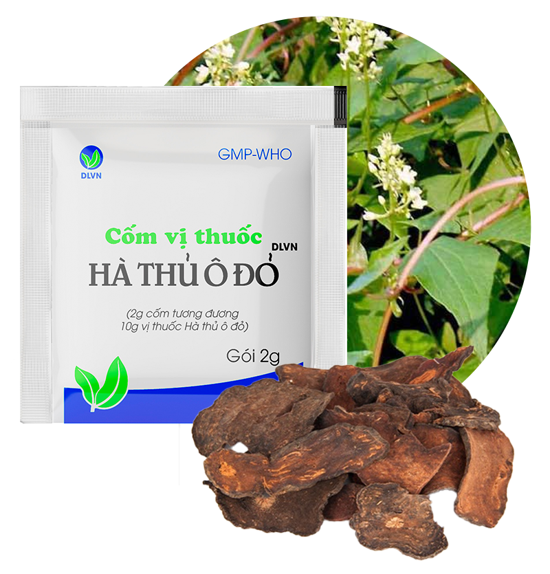 Liều dùng: Ngày uống 2-3 lần, mỗi lần dùng khoảng 1,0g cốm thuốc (1/2 gói 2g cốm - tương đương 10g Vị thuốc Hà thủ ô đỏ chế).