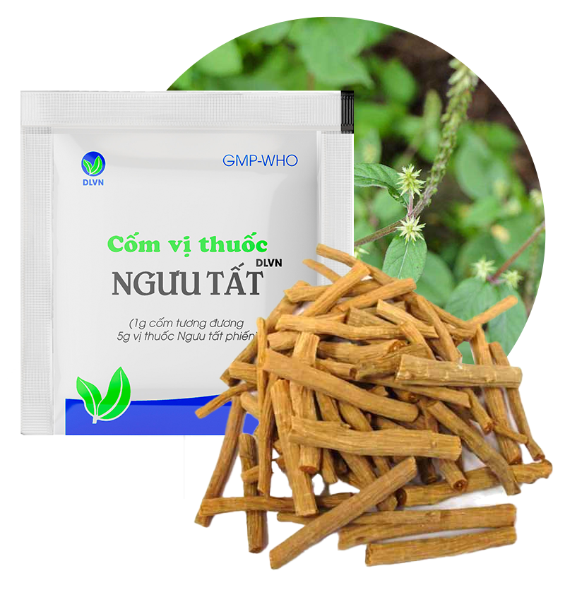 Liều dùng: Ngày uống 2-3 lần, mỗi lần dùng 1 gói cốm (tương đương 5g Vị thuốc Ngưu tất chích rượu).